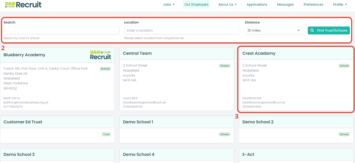 2. Use the search filters to locate trusts and schools.
