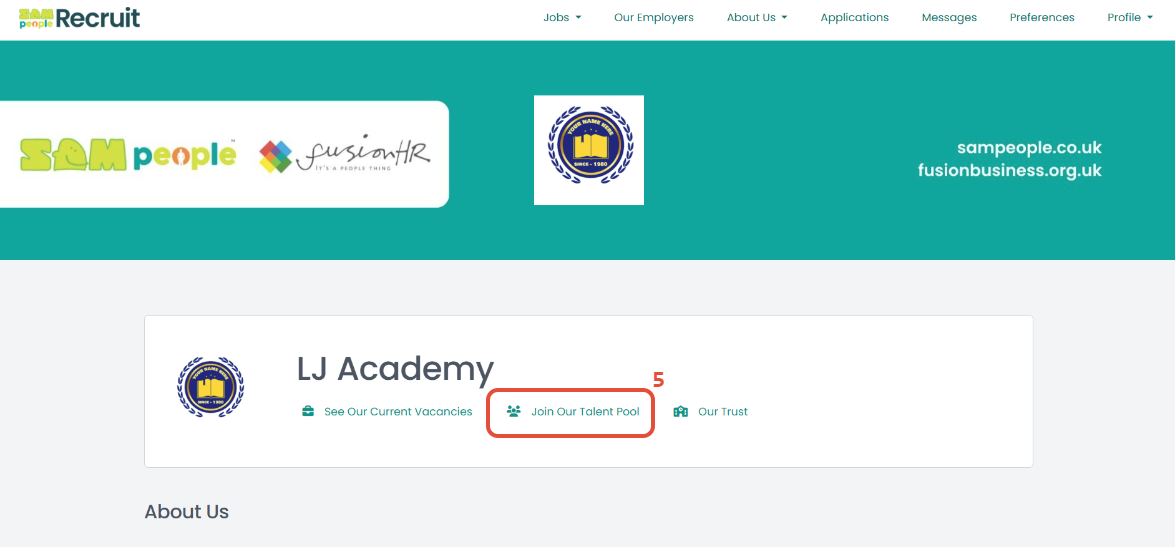 5. Request to join the talent pool within the trust or school by selecting Join Our Talent Pool.