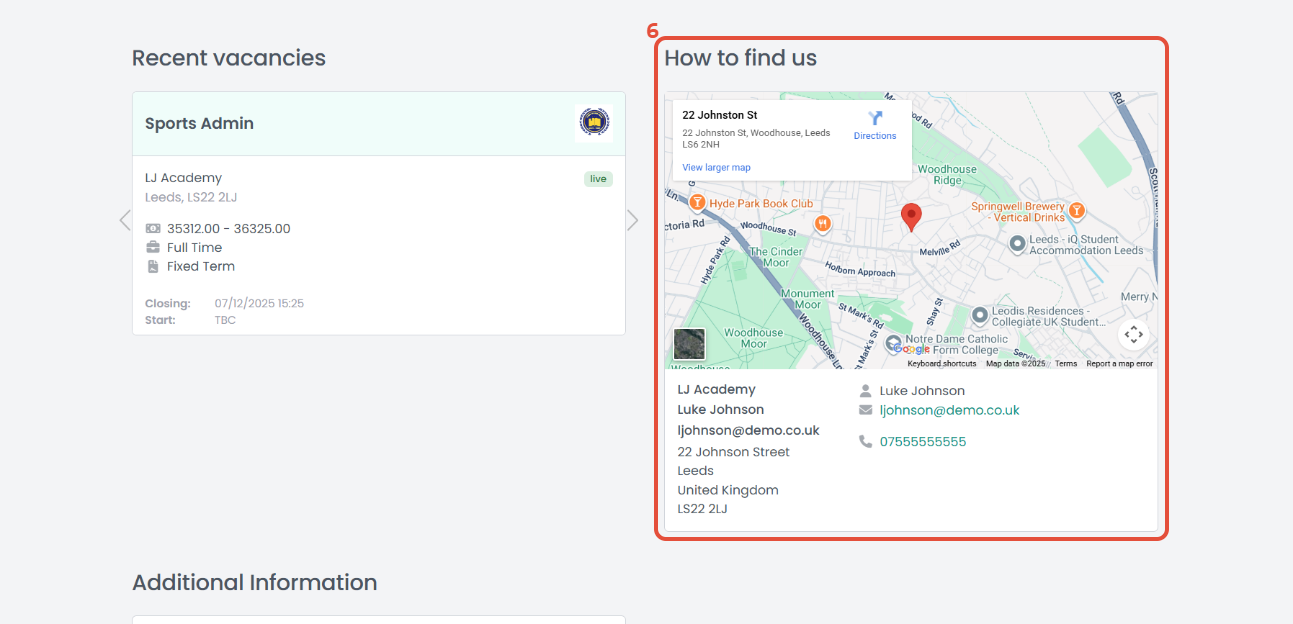 6. Find the location of the trust or school along with the contact details of the establishment.