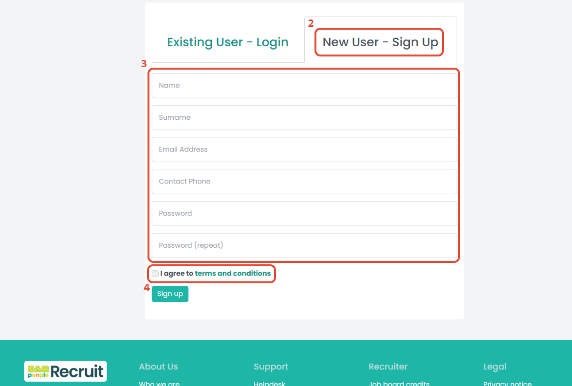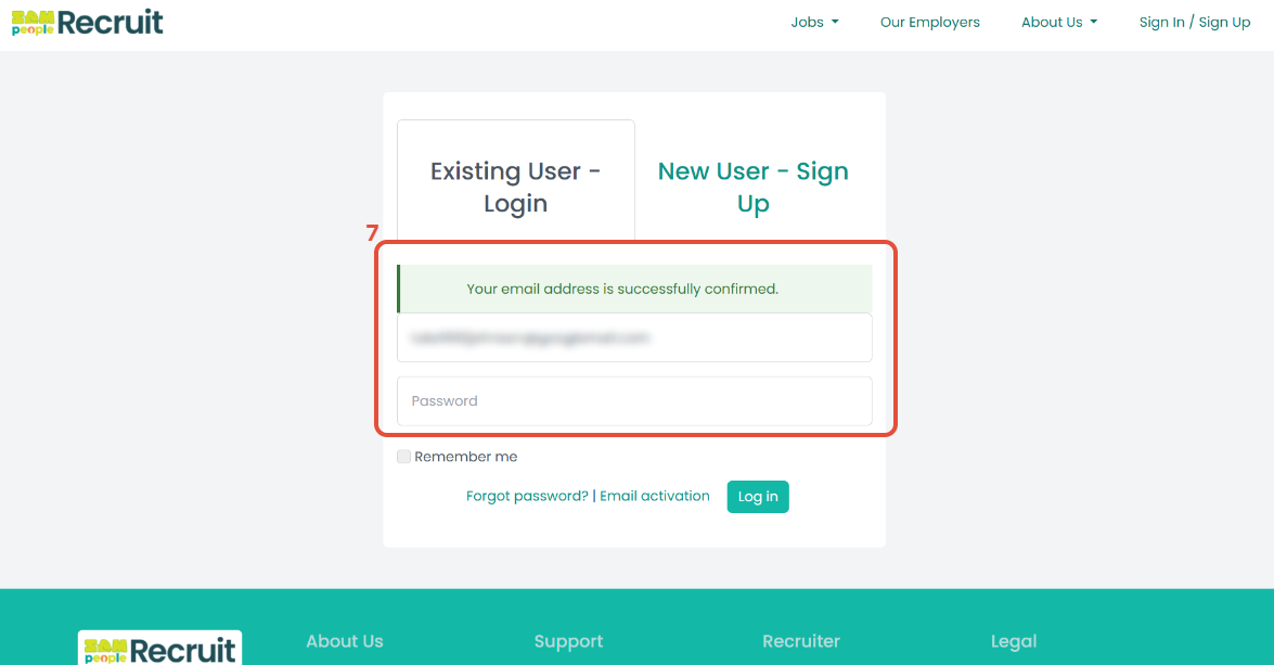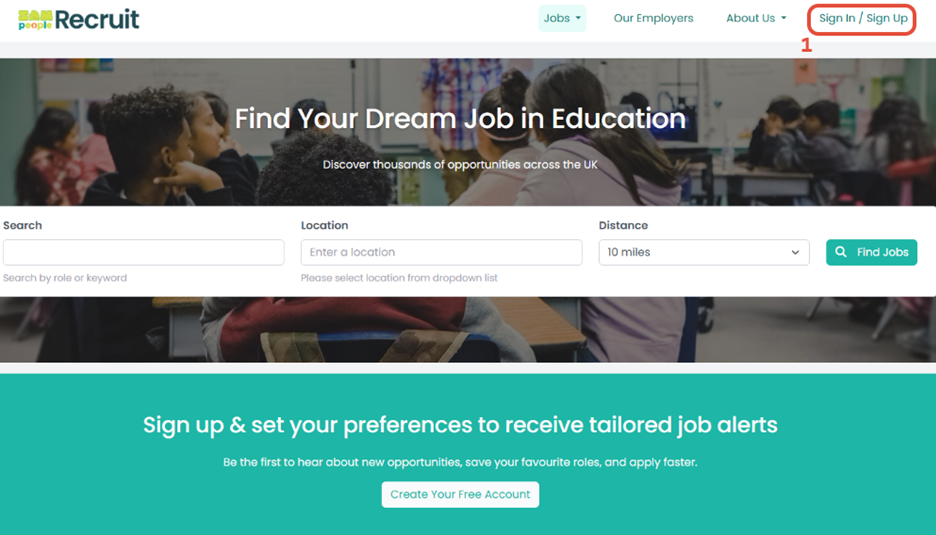 1. When on the SAMpeople Recruit landing page, select Sign In / Sign Up.