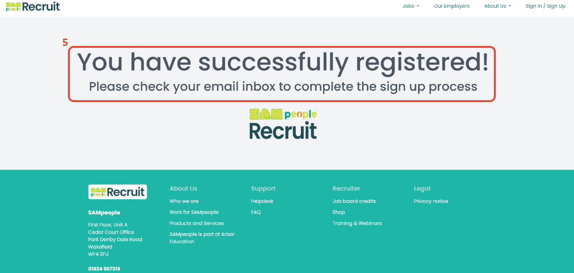 5. You will be informed that you have successfully registered and will receive an email in your inbox to complete the process.