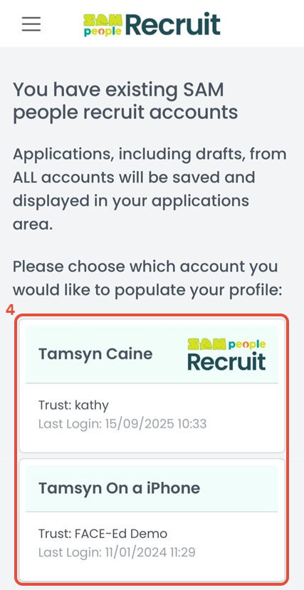 When you first log in to the Jobs Board, you’ll be prompted to select one of your existing SAMpeople Recruit accounts. Once selected, all data from your various accounts will be synchronised into your chosen profile.