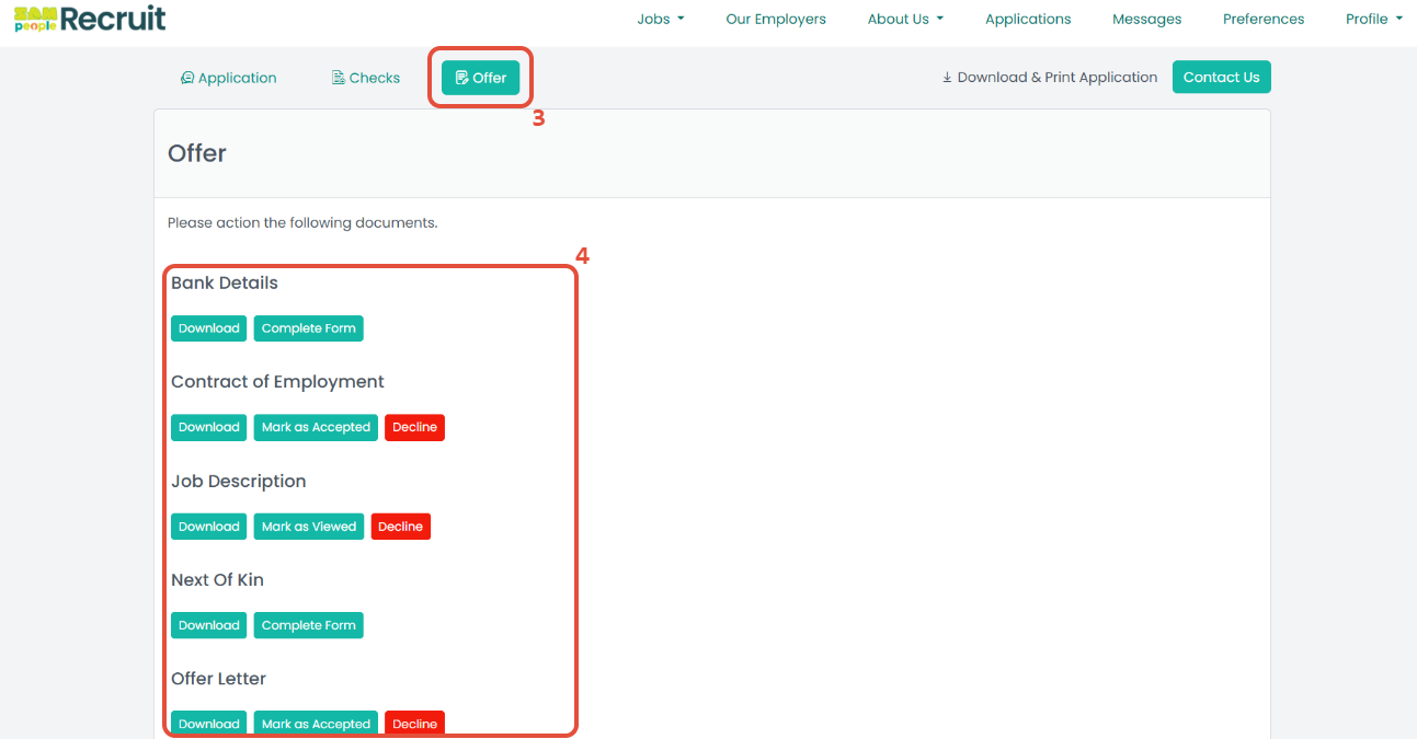 4. Action upon the documents that you have been sent. Documents can also be declined.