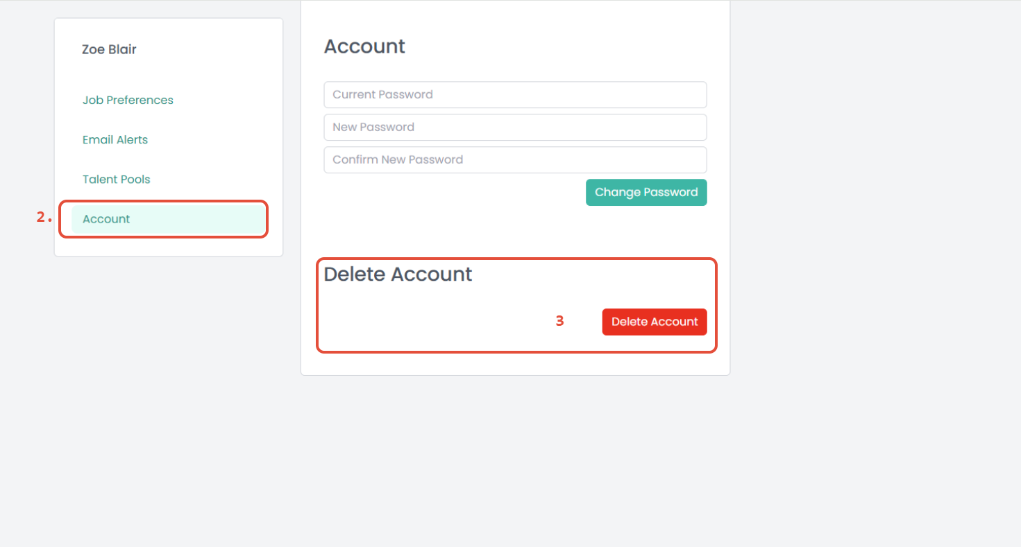 3. Select Delete Account.